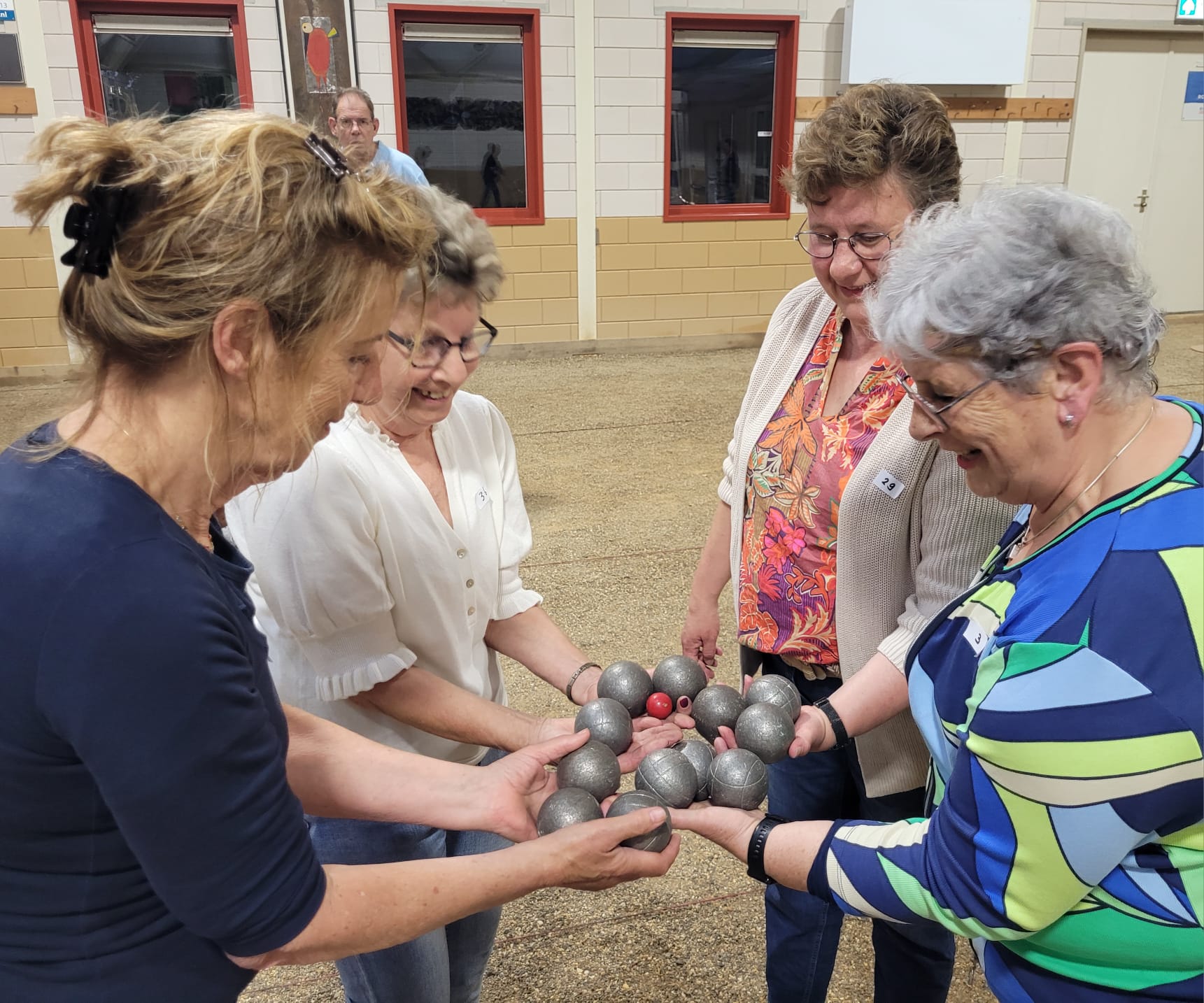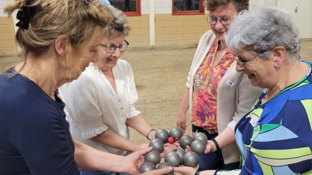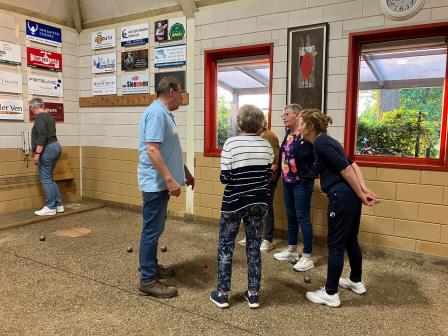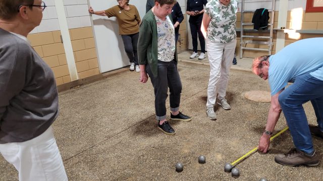 Op woensdag 22 mei 2024 vond er een jeu de boules-avond plaats in het gebouw van de Jeu de Boules Vereniging in Boekel. Een paar leden van de vereniging waren aanwezig om de avond te begeleiden en aan te sturen. We werden ontvangen met koffie en thee en kregen ieder drie penningen voor consumpties. Huub van Helvoirt legde het spel uit en had van tevoren de indeling gemaakt. In groepjes van vier werden de eerste ballen direct gegooid. Een aantal fanatieke leden van VrouwenActief waren ook aanwezig, en tussen het gooien door leerden zij ons de kneepjes van het vak. Het ging er serieus aan toe: Gerard van der Ven moest regelmatig met de centimeter bepalen wie “lag” en wie niet!