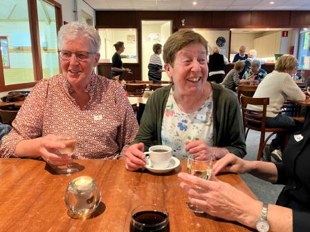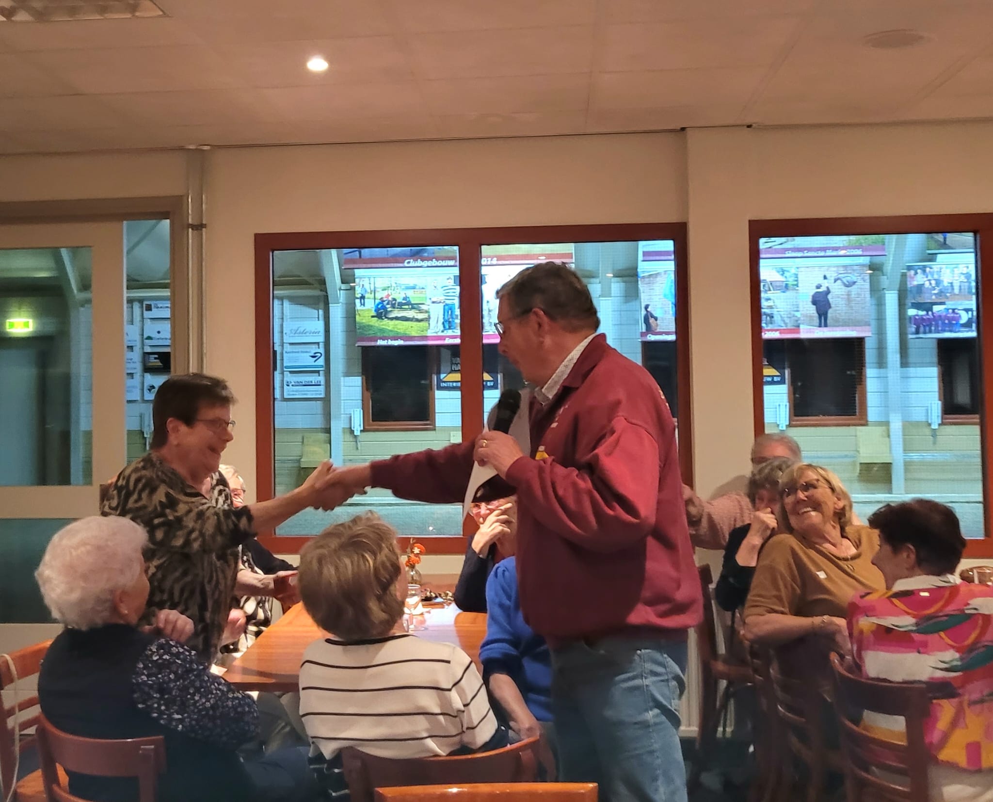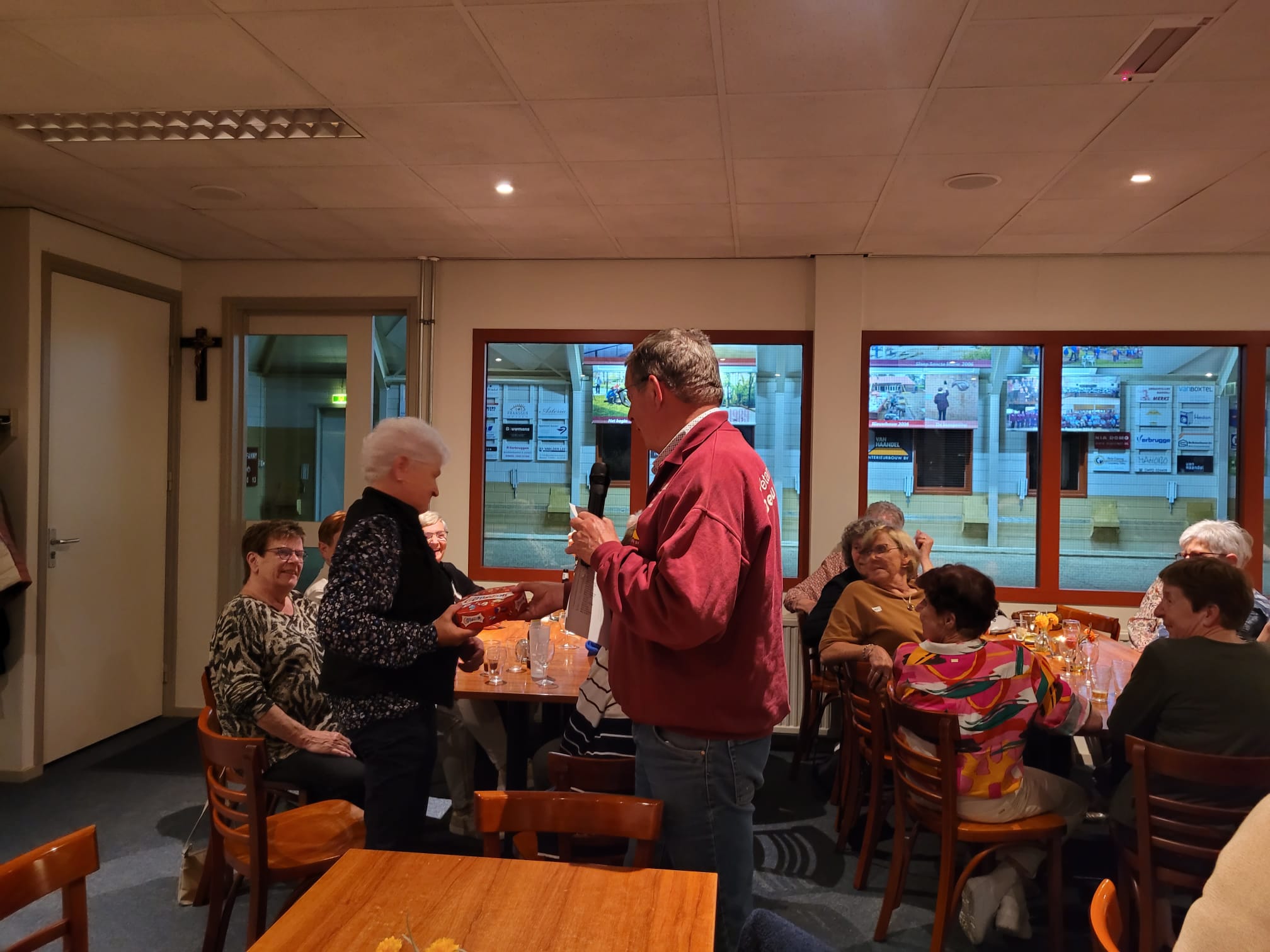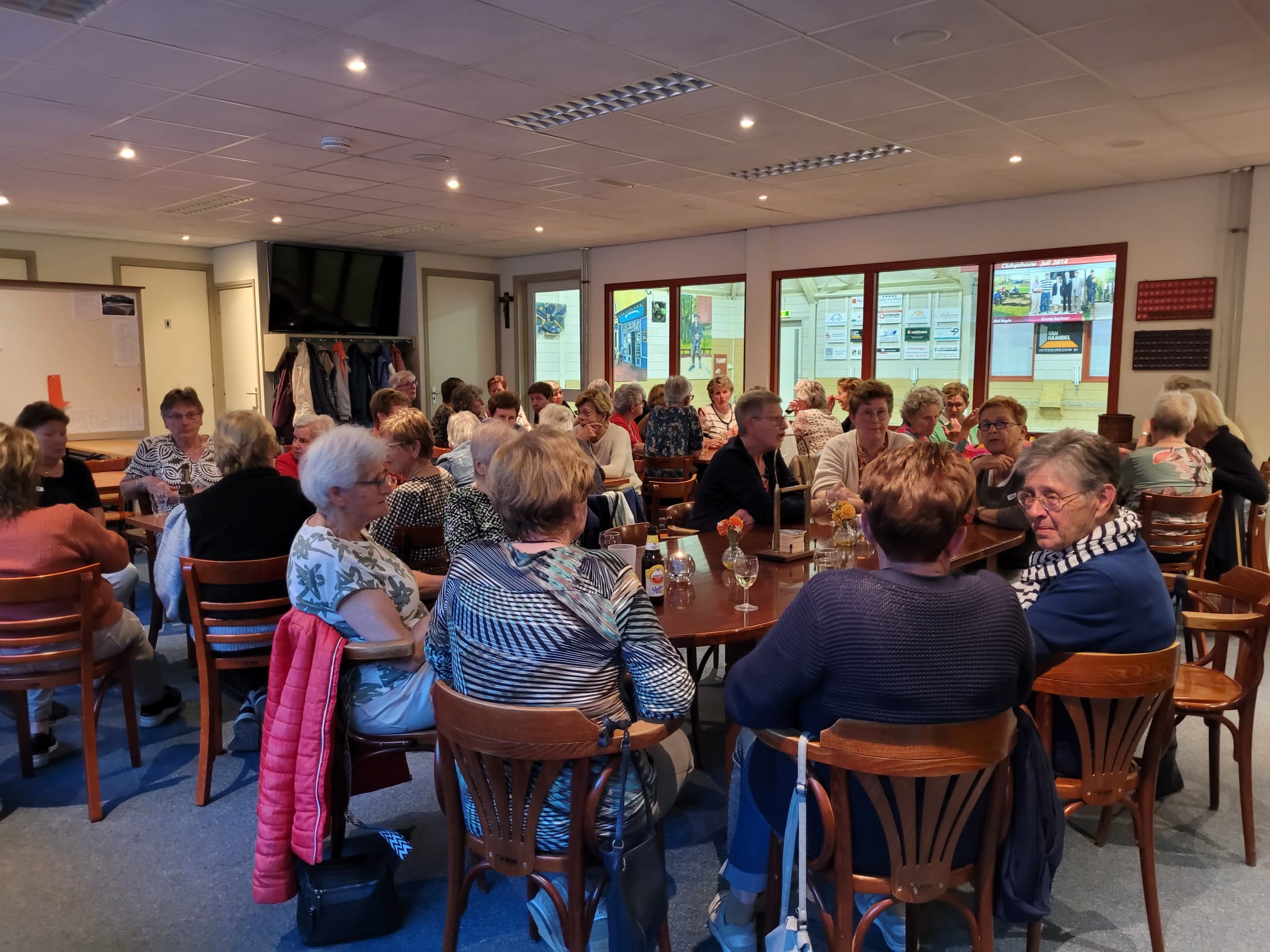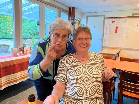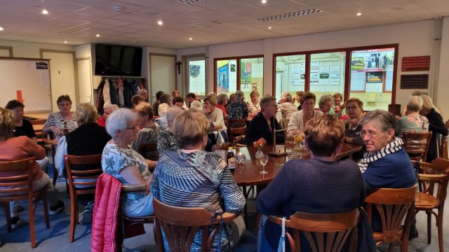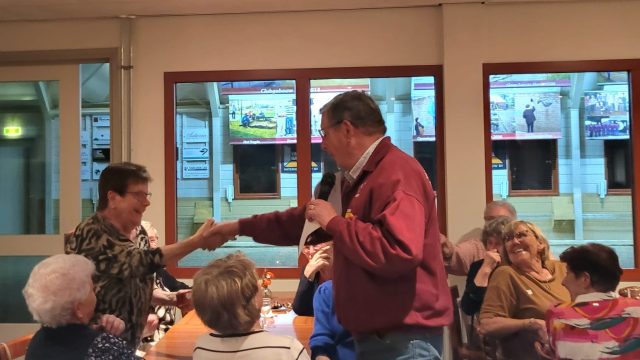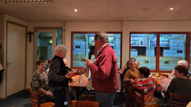 Na het eerste potje werden de penningen ingewisseld voor een glaasje fris of een wijntje, en er werd gezellig nagepraat door de 46 aanwezige leden. Huub had al snel een nieuwe indeling klaar voor het tweede potje, waarin iedereen weer fanatiek aan de slag ging. Na afloop werden de punten geteld en de prijzen uitgereikt. De poedelprijs ging naar Maria van Berlo en de eerste prijs naar Helma van Eerdt.