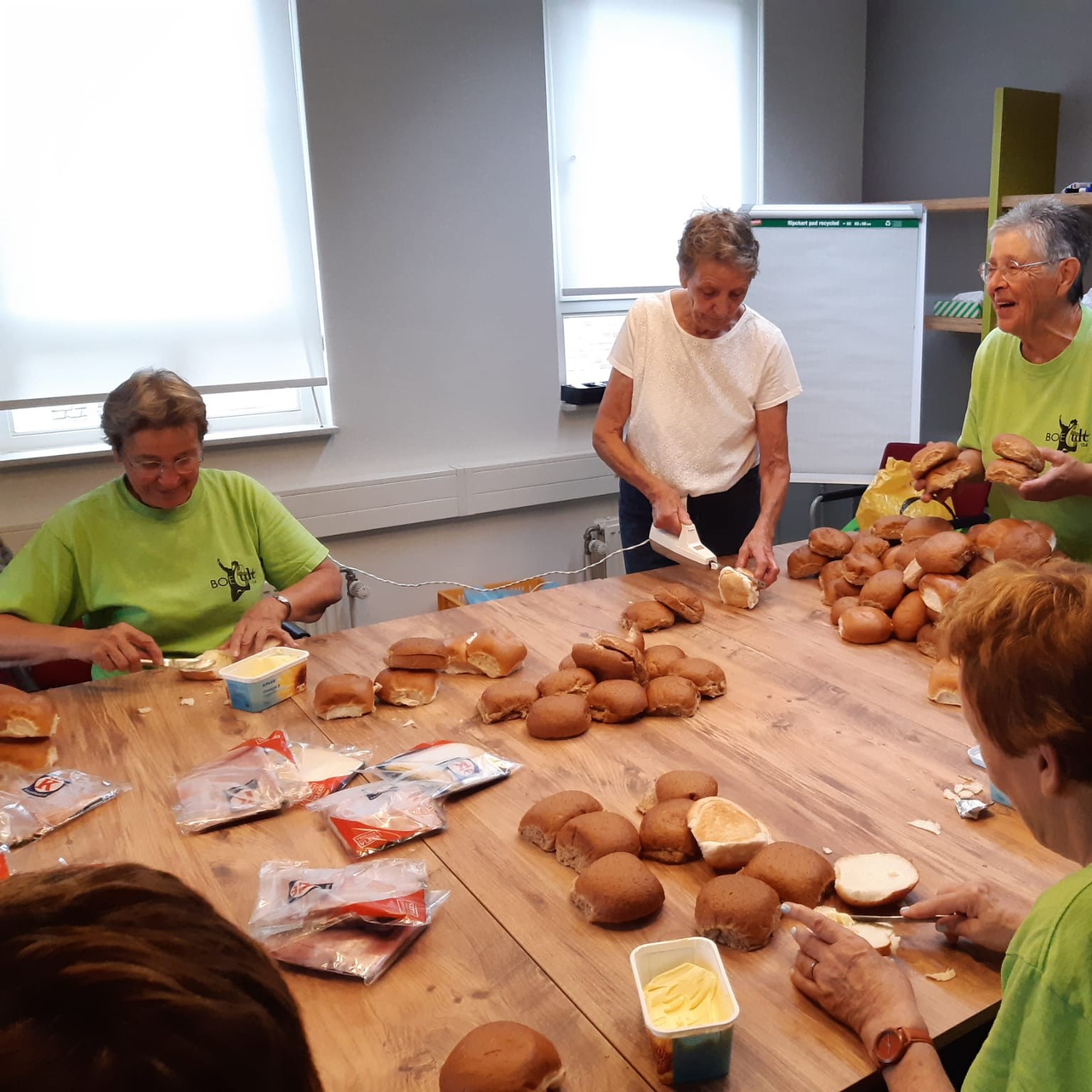 Boecult Tijdens de 20e Boecult waren de dames van VrouwenActief wederom actief met de vele broodjes te smeren. Dit ging in een geweldig georganiseerd tempo.Daarna waren ze behulpzaam bij het koffie schenken. Vorige 1of6 Volgende