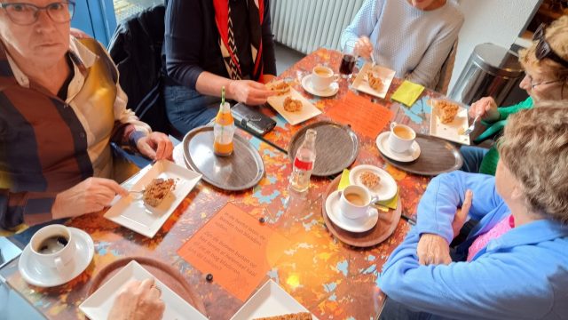 Ook zagen we Exmoorponys en Taurossen. Helaas moesten een aantal dames dezelfde pad terug omdat op het wandelpad Taurossen stonden en die waren niet van plan om te vertrekken. Na afloop nog wat drinken met iets lekkers in het bezoekerscentrum, waar ook van alles te zien is over het natuurgebied.