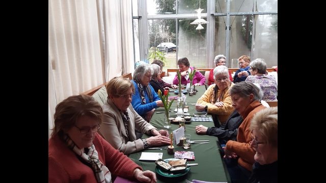 Daarna kregen we in 3 groepjes een rondleiding door de tuin. Veel groenten kruiden en specerijen worden zelf gekweekt in de ook kleurrijke tuin. In de zomer kunnen gasten hier ook zitten. Alle leden zijn zeer tevreden huiswaarts gegaan en zouden nog wel een bezoekje willen brengen.