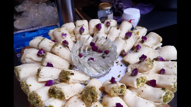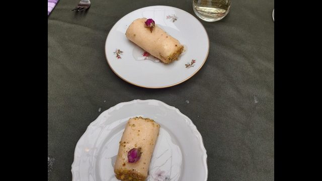 Hlawtaljbn—- Griesmeel met mozarella, mascarpone en pistache.